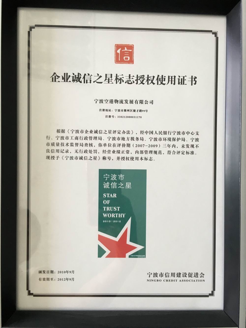 企業(yè)誠信之星授權(quán)使用證書